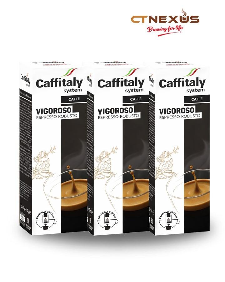 Caffitaly Vigoroso Espresso with a strong flavour and excellent body with notes of bitter cocoa and dark chocolate. Aromatic notes - Dark Chocolate and Tobacco Intensity -10/10