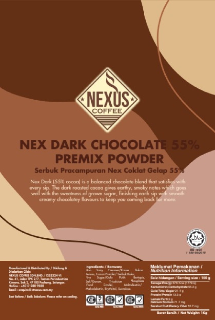 SKU: NEX DARK CHOCOLATE 55% PREMIX POWDER 1KGModel: NEX DARK CHOCOLATE 55% PREMIX POWDER 1KG